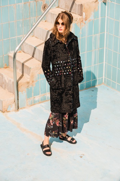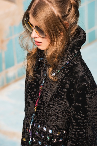 Elegant und figurbetont durch die kalte Jahreszeit mit einem wunderschönen schwarzen Breitschwanzmantel (Persianermantel) –  Eine Paspole aus Multicolor-Filz an der Kragenkante und Schließleiste verleihen dem Mantel eine besondere Raffinesse. Handgestanzte Löcher im Mantelstoff an Rückenseite, Vorderseite und an den Ärmeln lassen das unterlegte, vielfarbige Filz durchblitzen und erzeugen eine einzigartige Stil-Dynamik. Der Pelzmantel wird mit Druckknöpfen verschlossen und verfügt über zwei Einschubtaschen außen und eine Reißverschlusstasche im Innenfutter.
