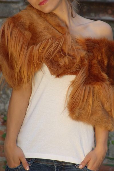 Verschlossen wird das Pelzteil mit einem Druckknopf.