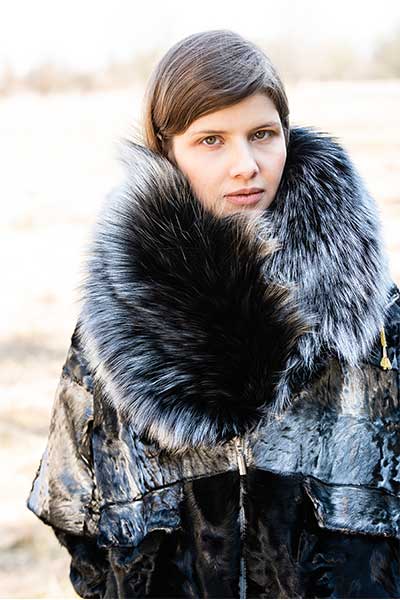 Diese ausgefallene Silklammjacke im Blousonstil ist ein absolutes Einzelstück. In den Farben schwarz und silber haben wir eine federleichte, im wahrsten Sinne des Wortes abgehobene Jacke gefertigt. Der obere Bereich der Jacke, einschließlich der Taschenpatten, ist aus silbernem Silklamm gefertigt. Der untere Teil, aus schwarzem Silklamm steht dazu im reizvollen Kontrast. Die Jacke ist mit einer Kapuze gearbeitet die, durch einen Stehkragen gehalten, auch bei stürmischen Wetter sitzt. Die Jacke ist mit großen Blasebalgtaschen und Einschubtaschen ausgestattet. Sie wird mit Reißverschluss verschlossen und verfügt über einen Kordelzug am Saum. Die Jacke ist mit eingearbeiteten Reißverschlussinnentaschen passend in grau/schwarz abgefüttert.